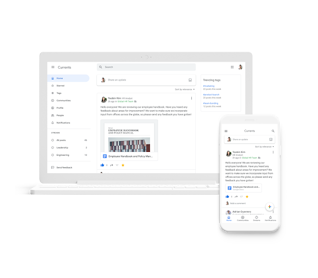 Теперь стало известно, что Google+ для корпоративных пользователей пакета G Suite переименовали в Currents. Данный сервис получил новый внешний вид и набор функций. Весь существующий в вашей организации контент Google+ будет автоматически переведен в раздел Currents, как только вы зарегистрируетесь в бета-версии.