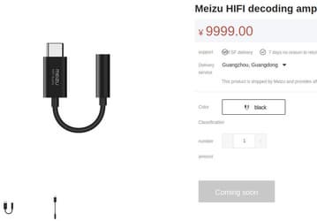 Переходник к разъемами USB-C и 3,5 мм уже появился в официальном интернет-магазине Meizu