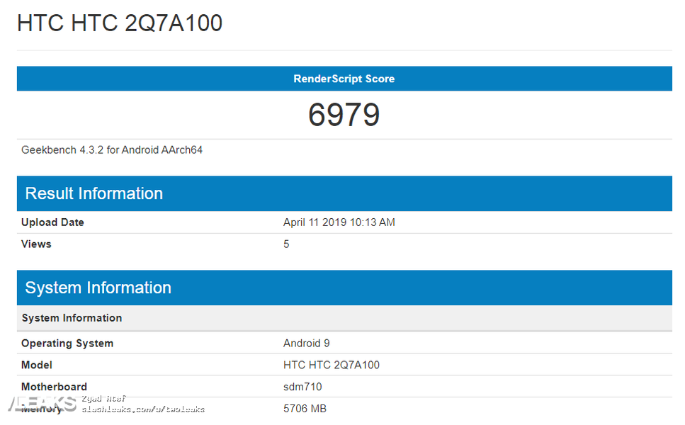 Первая запись об HTC 2Q7A100 в Geekbench была сделана только вчера, 11 апреля. Больше никакой информации об устройстве на данный момент нет.