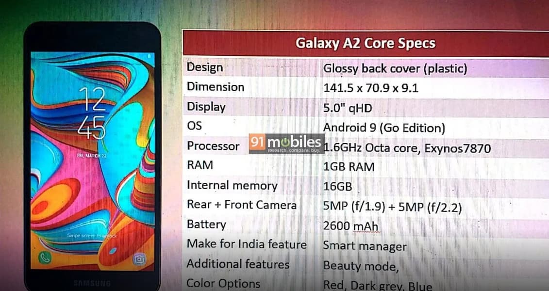О бюджетном смартфоне Samsung Galaxy A2 Core мы писали уже не раз. Мы видели его изображения и знакомились с его параметрами, теперь же пришёл черёд цены. Впрочем, и параметры источник немного скорректировал.