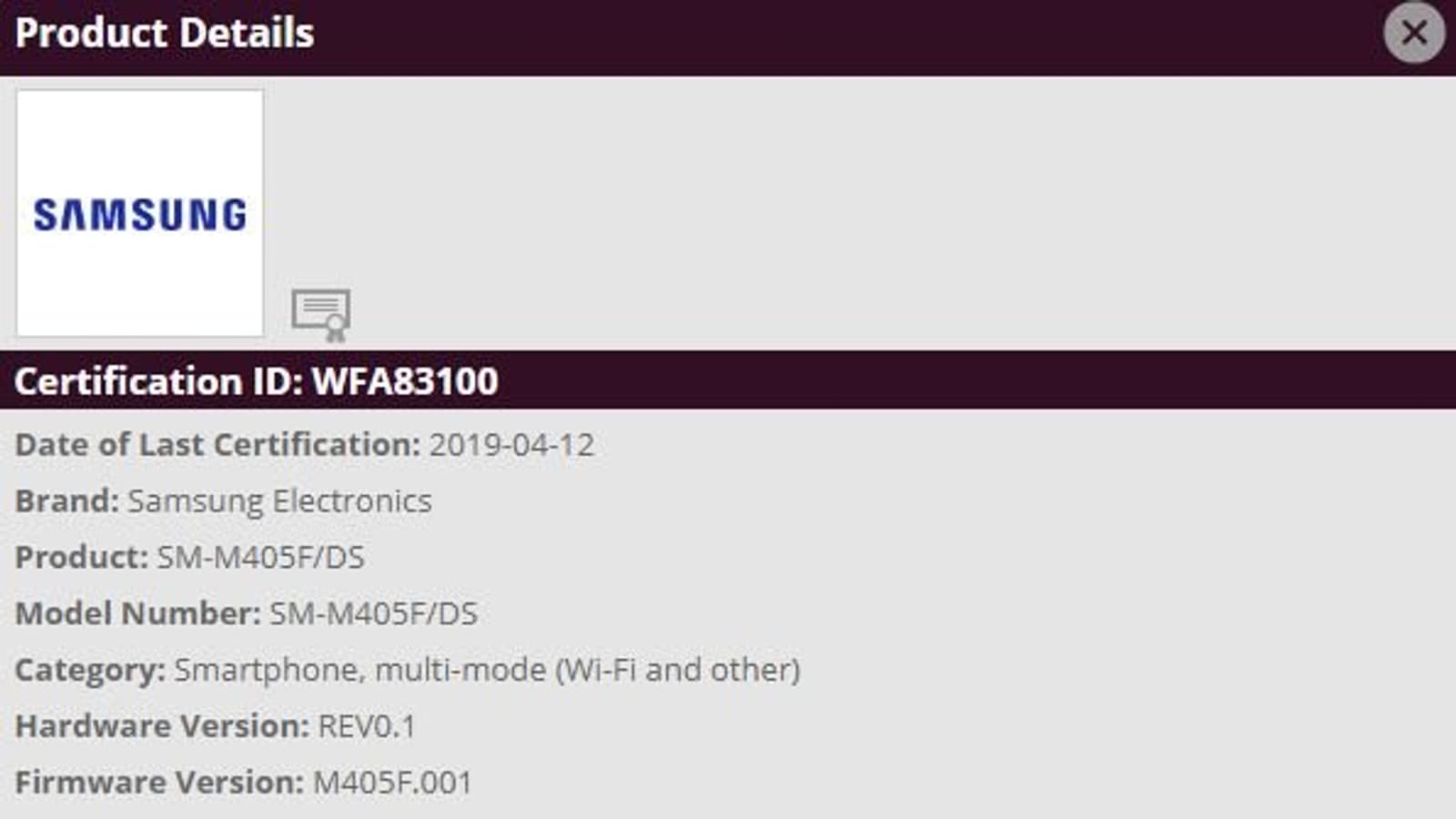 Увы, Wi-Fi Alliance не предоставляет особых технических подробностей о модели. С уверенностью можно сказать, что модель SM-M405F/DS (это каталожный номер Galaxy M40) поддерживает Wi-Fi 802.11 ac и работает под управлением Android 9.0 Pie. Можно предположить, что топовая модель серии также предложит более крупный экран, чем у Galaxy M30 (то есть более 6,4 дюйма), и точно такую же тройную камеру. Но пока это только догадки.