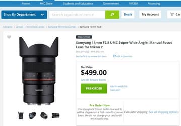Стали известны цены объективов Samyang MF 14mm F2.8 Z и MF 85mm F1.4 Z