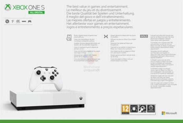 Немецкий источник, за которым стоит известный сетевой информатор Роланд Квандт (Roland Quandt), опубликовал подробности и официальные изображения новой игровой приставки Microsoft, получившей название Xbox One S All Digital.