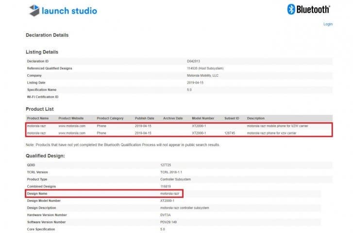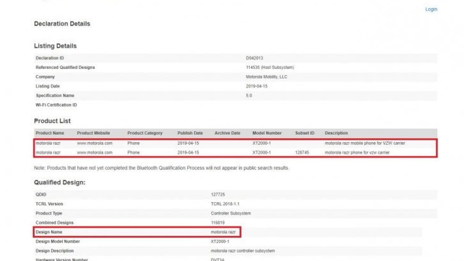 Как мы уже неоднократно сообщали, Motorola планирует в этом году выпустить складной смартфон Razr, возродив легендарную марку начала 2000-х годов. Уже известны предварительные технические характеристики устройства, а сейчас появилось подтверждение, что анонс новинки приближается. Устройство под кодовым названием Voyager получило сертификацию Bluetooth SIG.