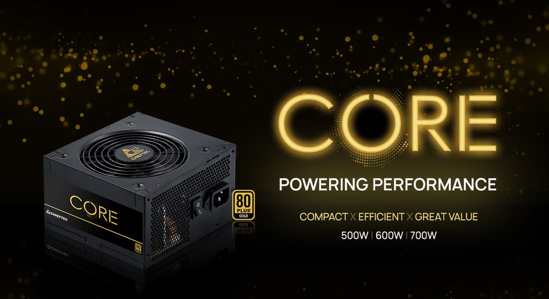 Компания Chieftec представила серию блоков питания Core. Серия включает модели мощностью 500, 600 и 700 Вт. Все они имеют сертификат 80 Plus Gold и оснащены несъемными кабельными системами.