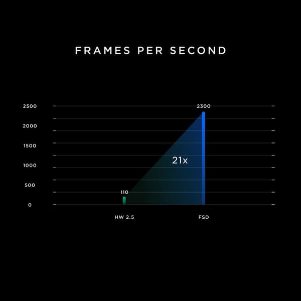 Tesla берет для сравнения компьютер на двух новых процессорах суммарной производительностью 144 триллиона операций в секунду (TOPS), достаточной для обработки данных радаров и других датчиков, и работы нейронных сетей.