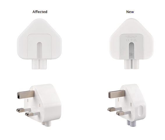 Apple пояснила: «В очень редких случаях трёхконтактные адаптеры штепсельной вилки Apple могут сломаться и создать риск поражения электрическим током при прикосновении».