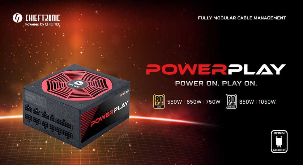 В их описании производитель отмечает «высококачественные японские конденсаторы, которые обеспечивают чрезвычайно низкий уровень пульсаций» и наличие «новейшей защиты». Блоки питания Chieftronic PowerPlay оснащены модульными кабельными системами. Вне зависимости от мощности блока его размеры равны 160 х 150 х 86 мм. Для охлаждения используются 140-миллиметровые вентиляторы.