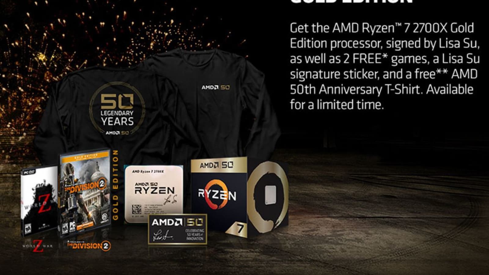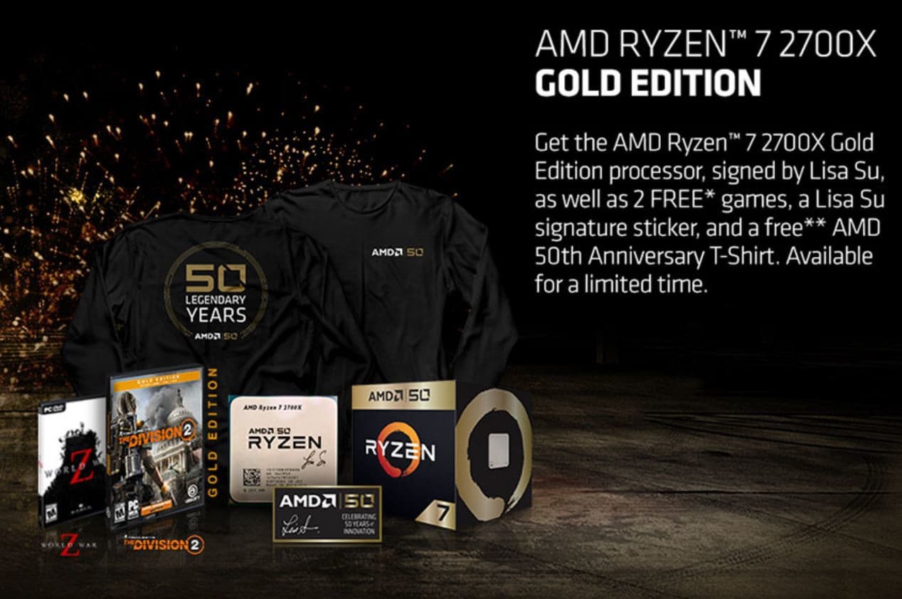 Как известно, в этом году компания AMD празднует свое 50-летие. Мы уже сообщали, что юбилей будет отмечен, в частности, выпуском специальной версии восьмиъядерного настольного процессора Ryzen 7 2700X. Она называется AMD Ryzen 7 2700X Gold Edition и отличается не только оформлением коробки.
