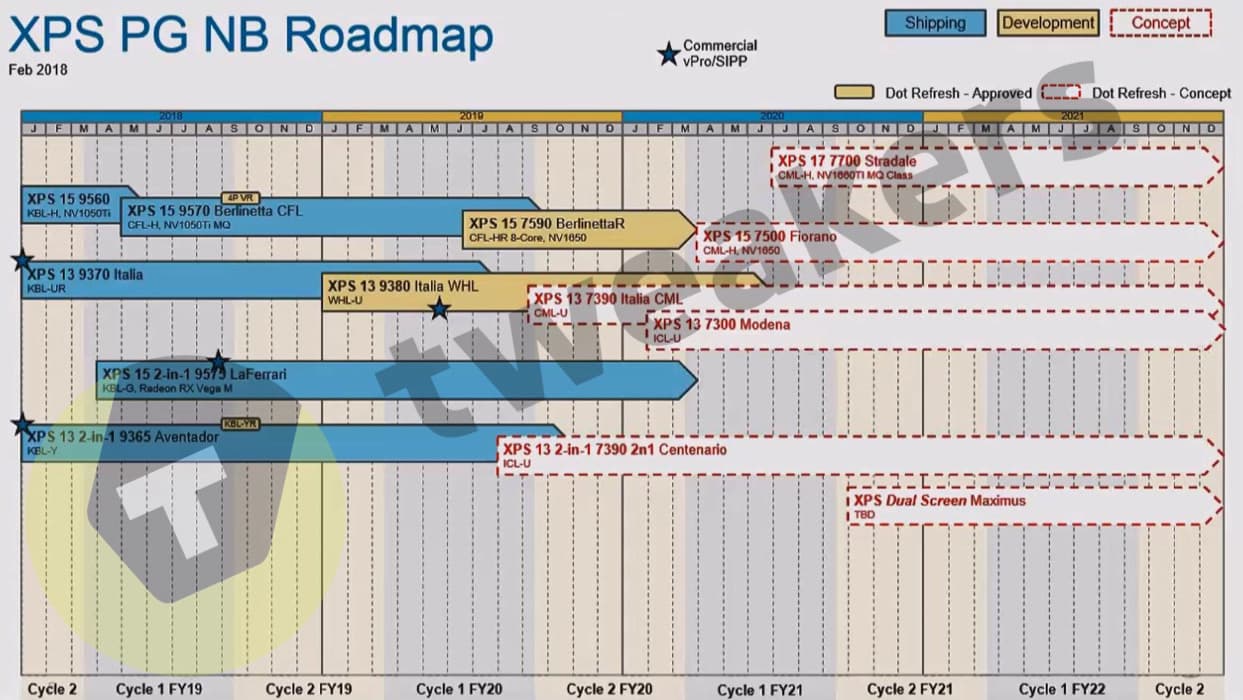 Также дорожная карта указывает на весьма скорый выход ноутбука XPS 13 с кодовым именем Centenario, основанного на 10-нанометровых процессорах Intel Ice Lake-U. Напомним, сама Intel обещает такие CPU лишь к самому концу года. Учитывая, что в дорожной карте Dell этот ноутбук отмечен, как концепт, вполне вероятно, что выйдет он всё-таки позже.
