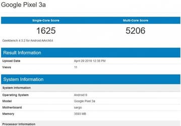 Смартфон Google Pixel 3a замечен в тесте Geekbench