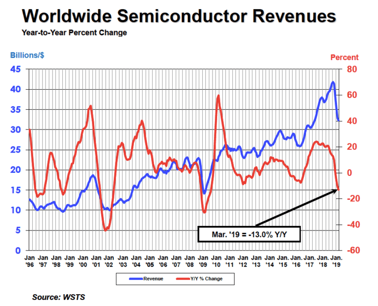 «Глобальные продажи полупроводников в первом квартале 2019 года замедлились, отстав от предыдущего квартала и первого квартала прошлого года на двузначные проценты, — сказал Джон Нойффер (John Neuffer), президент и генеральный директор SIA. — Продажи в марте снижались из года в год по всем основным региональным рынкам и категориям полупроводниковой продукции в соответствии с циклической тенденцией, наблюдаемой в последнее время на мировом рынке».