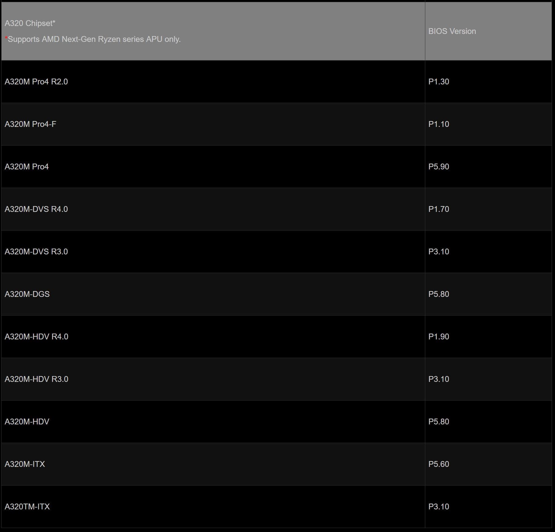 Теперь же, судя по всему, вопрос можно считать закрытым, так как на сайте ASRock появились данные об обновлениях BIOS для системных плат компании, наделяющих их поддержкой грядущих CPU. И модели с чипсетом A320 действительно будут лишены такой поддержки. Да, есть возможность установить новые APU линейки Ryzen 3000, но это объясняется тем, что данные процессоры являются представителями текущего поколения и основаны на архитектуре Zen+.