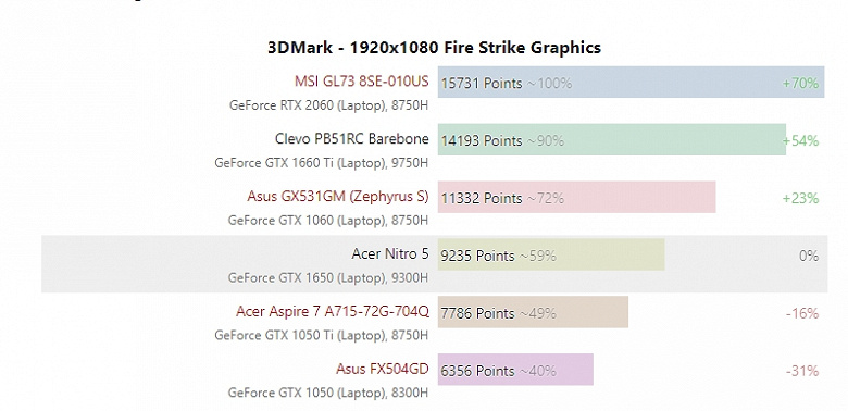 В целом можно говорить, что новая видеокарта очень сильно опережает предшественниц и мало уступает GTX 1060, да и то не везде. Ноутбук Acer Nitro 5, который и был на тестировании, сейчас стоит около 1000-1100 долларов, но нам обещают подобные модели за 800-900 долларов, и вот при такой цене это будет отличное предложение.