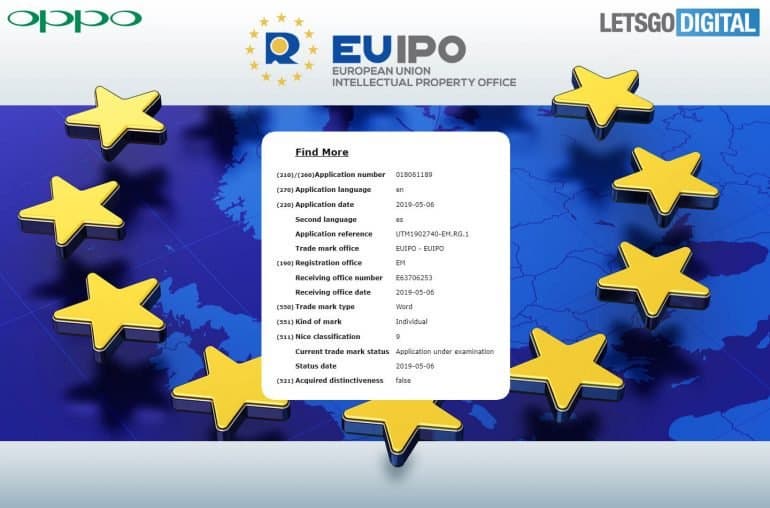 6 мая 2019 года компания Oppo Mobile Telecommunications подала различные заявки на товарные знаки. Заявки были поданы из Испании в EUIPO (Бюро интеллектуальной собственности Европейского Союза) через посредническую компанию Domingo Galletero.
