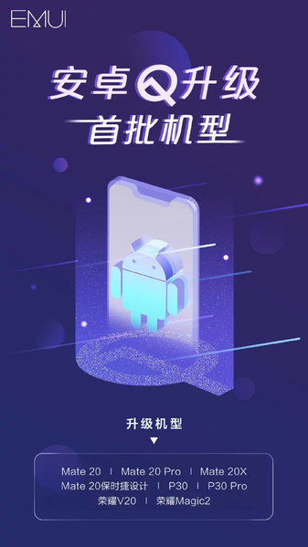 В список смартфонов, которые первыми получат финальную версию Android 10, вошли Huawei Mate 20, Mate 20 Pro, Mate 20 X, Mate 20 Porsche Edition, Huawei P30, P30 Pro , Honor V20 и Honor Magic 2.