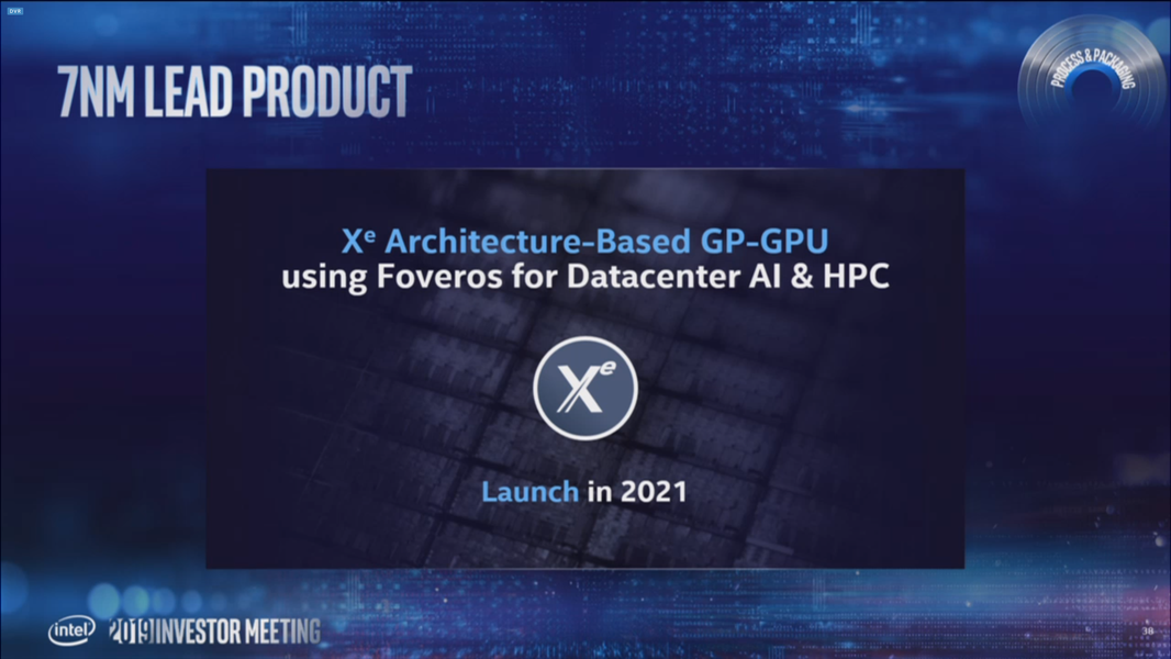 Как бы там ни было, оказалось, что с семинанометровым техпроцессом всё достаточно интересно. Дело в том, что первым продуктом, произведённым по новым нормам, будет вовсе не процессор, а GPU. Если точнее, это будет GPU семейства Intel Xe, на основе которого будет создан графический ускоритель для центров обработки данных и высокопроизводительных вычислений. Проще говоря, это будет непотребительский продукт. Кроме того, известно, что GPU будет создан (или будут созданы, если это будет несколько графических процессоров) с применением технологии Foveros.