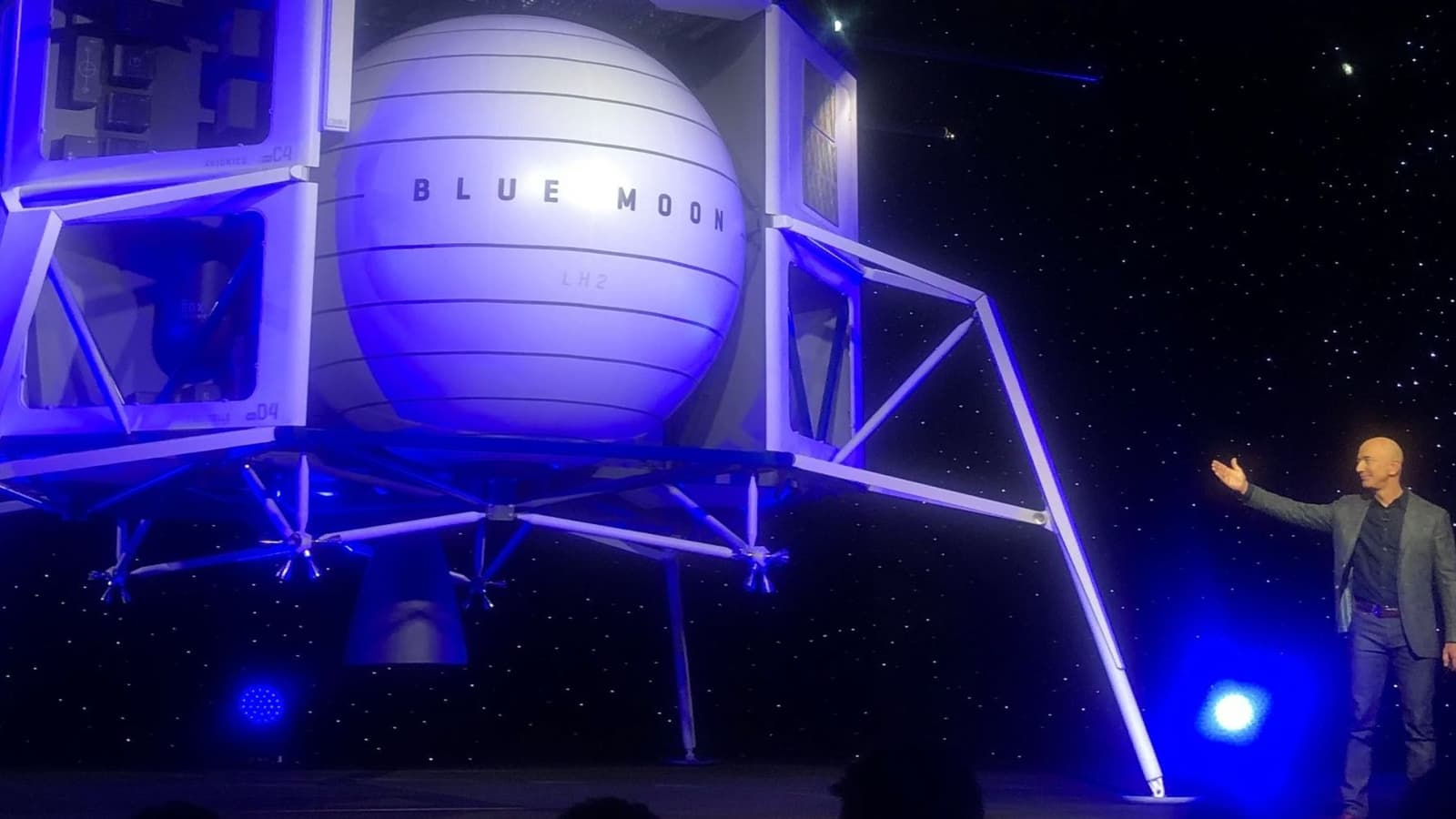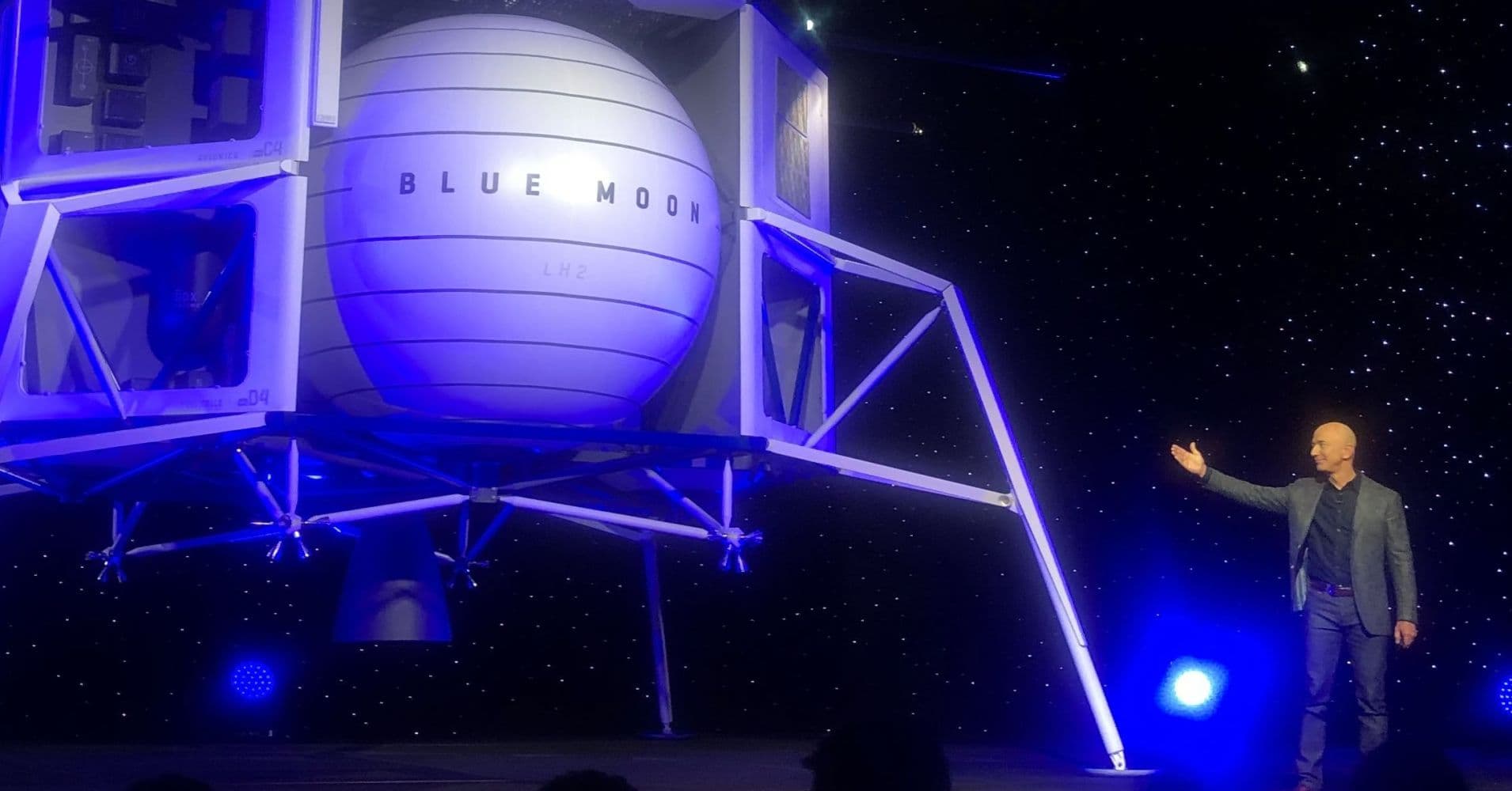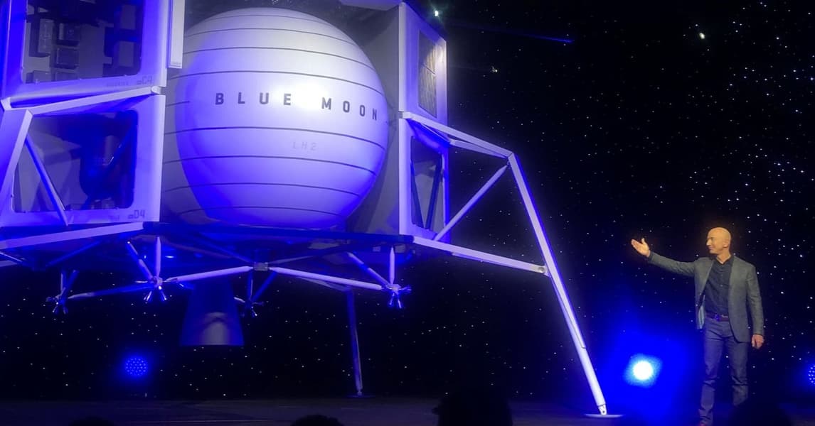 Глава компании Amazon и основатель частной космической компании Blue Origin Джефф Безос (Jeff Bezos) представил лунный корабль Blue Moon и новый ракетный двигатель BE-7.