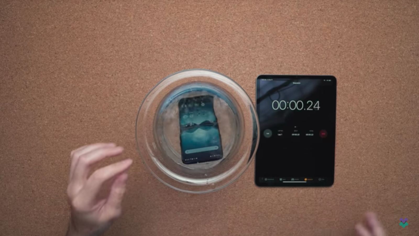 Почти одновременно аналогичный тест провёл Dave 2D, он же Дэйв Ли (Dave Lee), продержав в воде смартфон 16 минут. Здесь смартфон тоже показал себя хорошо.