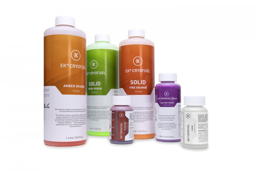 Помимо этого, EK добавляет в палитру EK-CryoFuel охлаждающие жидкости трех новых цветов: оранжевую, фиолетовую и розовую — EK-CryoFuel Amber Orange, EK-CryoFuel Indigo Violet и EK-CryoFuel Power Pink соответственно. Они доступны в виде концентрата, расфасованного по 100 мл, и готовой жидкости, расфасованной по 1000 мл.