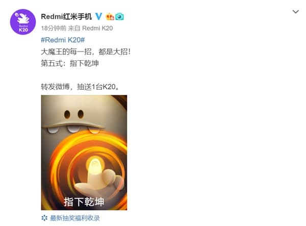 На официальной страничке Redmi в социальной сети Weibo опубликован очередной тизер, который на этот раз коснулся сканера отпечатков пальцев. Пояснения в тексте говорят о том, что он будет быстрее сканера отпечатков пальцев Mi 9.