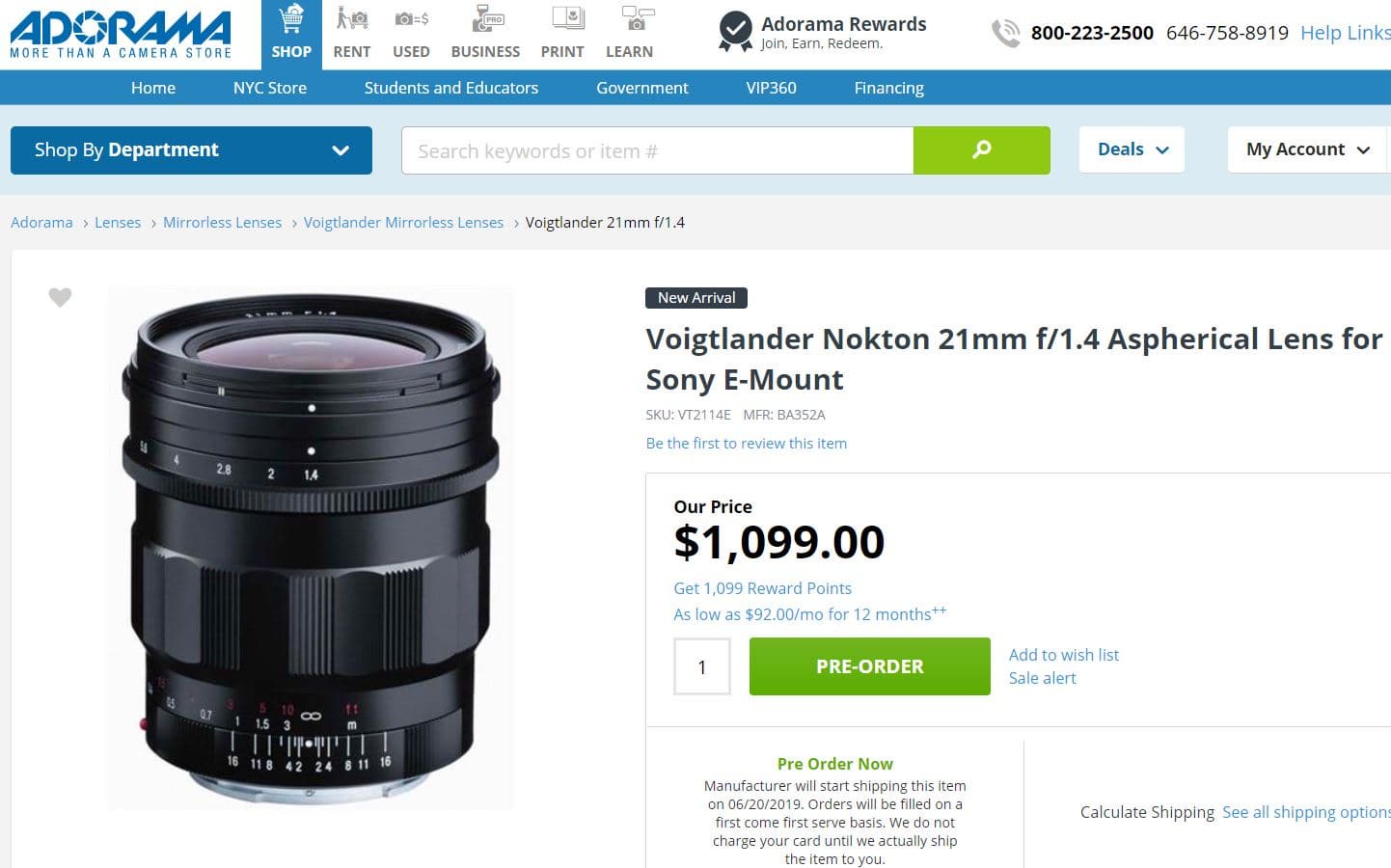 Как мы уже сообщали, в начале недели был представлен полнокадровый объектив Voigtlander Nokton 21mm f/1.4 с креплением Sony E. Тогда была названа цена только на японском рынке, однако известно, что в Японии фототехника дороже, чем на Западе. За эти дни прием заказов начали крупные американские магазины, так что стала известна цена, представляющая больший интерес для потенциальных покупателей.