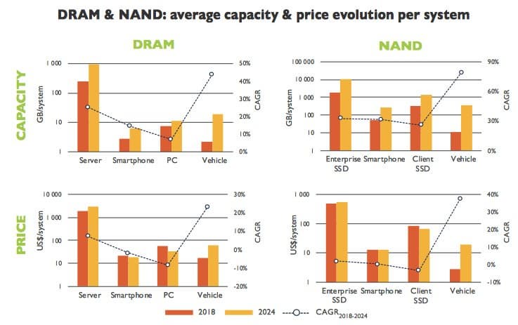 Спрос на память памяти со стороны систем и приложений, ориентированных на работу с данными, способствует долгосрочному росту рынка. Спрогнозировать величину роста взялись специалисты французской аналитической компании Yole Developpement. Они отмечают, что типичную для отрасли цикличность и сезонность за последние десять лет перекрыла тенденция необычайного роста. Она обусловлена важными трендами, включая рост популярности мобильных устройств, облачных вычислений, развитие искусственного интеллекта и интернета вещей.
