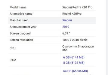 16:02 Раскрыты полные характеристики Redmi K20 Pro, вплоть до частотных диапазонов LTE: В модели 6 или 8 ГБ ОЗУ и 64, 128 или 256 ГБ флэш-памяти