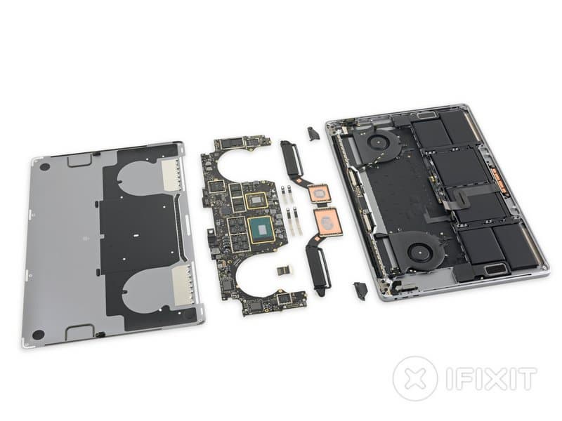 Разборке подверглась модель с шестиядерным CPU Intel Core i7-9750H, GPU AMD Radeon Pro 555X, 16 ГБ оперативной памяти и SSD объемом 256 ГБ. Версию с восьмиядерным CPU специалисты iFixit не достали, но в плане конструкции и сборки она явно ничем не отличается от той, что представлена на этих фото и в видео.