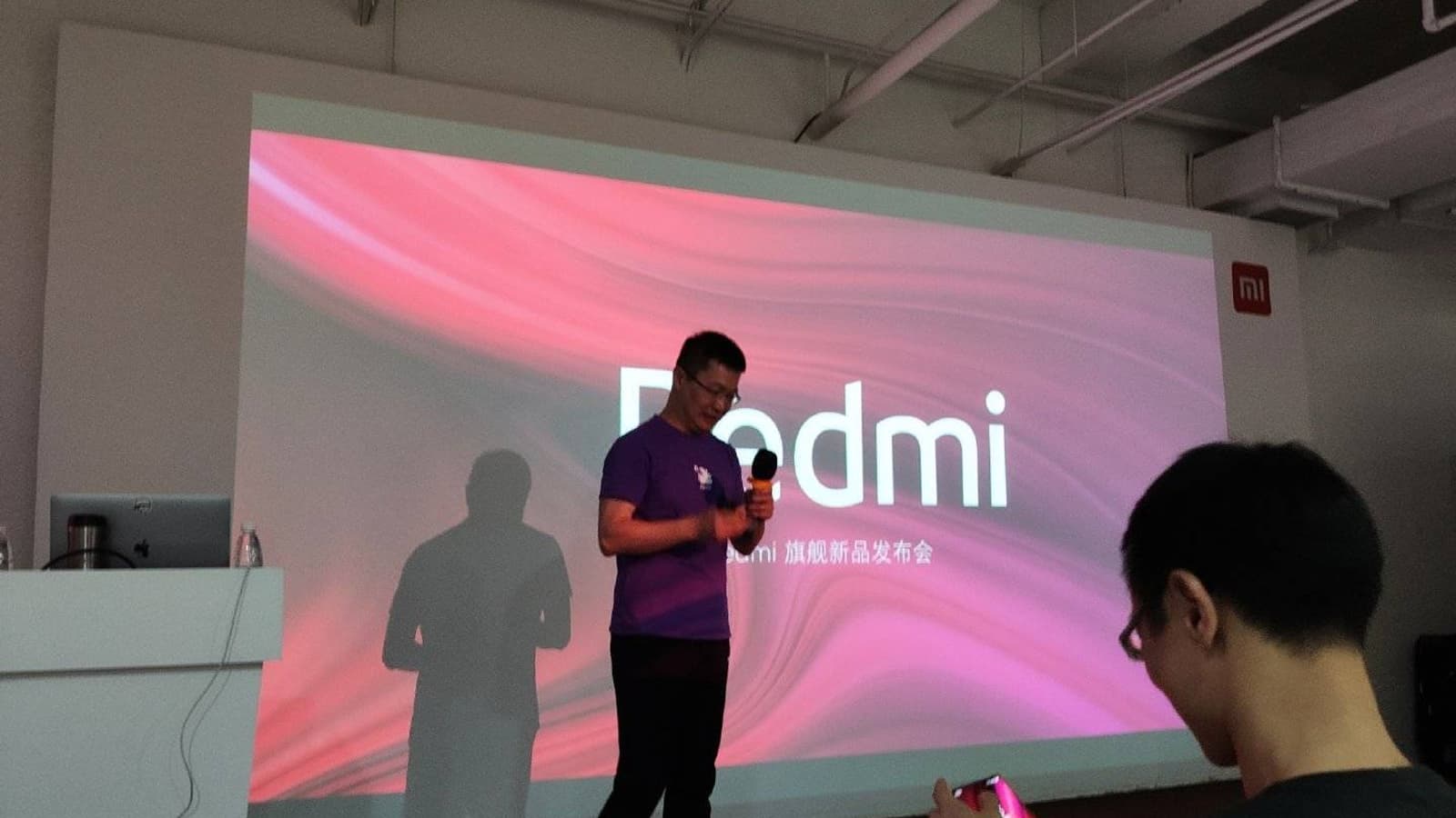 Судя по количеству людей, презентация была закрытой. Но это не уберегло от появления фото в Сети. Тут же источник опубликовал живое фото смартфона, а также – уже совсем эксклюзив – фото Redmi K20 без задней панели.