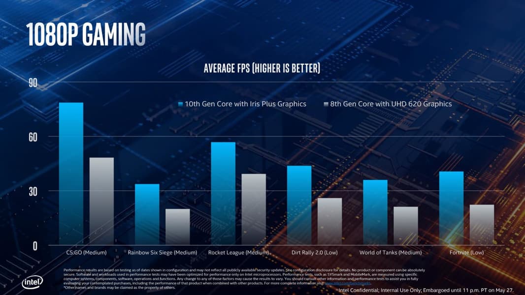 Кроме того, что эти CPU принесут новую архитектуру и долгожданный новый техпроцесс, они смогут похвастаться ещё и новым GPU. Про GPU Gen11 нам рассказывали пару дней назад, демонстрируя почти двукратный прирост относительно UHD 620. Правда, в сравнении с современными GPU в гибридных процессорах AMD, ничего особого мы не получим.