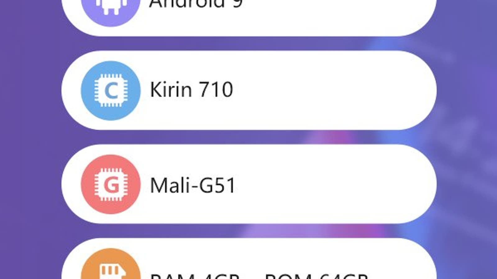 Ему приписывали SoC Kirin 710 и тройную камеру. Теперь у нас есть более достоверные данные. ПО AnTuTu указывает на то, что новинка действительно будет оснащена однокристальной системой Kirin 710. Также аппарат получит 4 ГБ ОЗУ, 64 ГБ флэш-памяти и экран разрешением Full HD+. В качестве ОС выступит Android Pie.