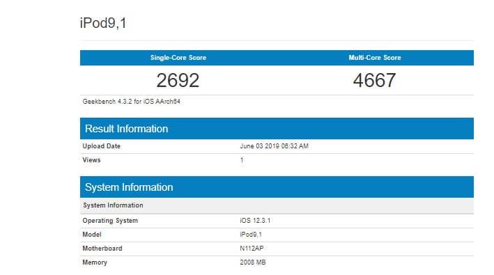 В базе данных популярного бенчмарка Geekbench, наконец, появились результаты тестирования медиаплеера iPod touch, построенного на базе однокристальной системы A10 Fusion, которая дебютировала в iPhone 7 в 2016 году.