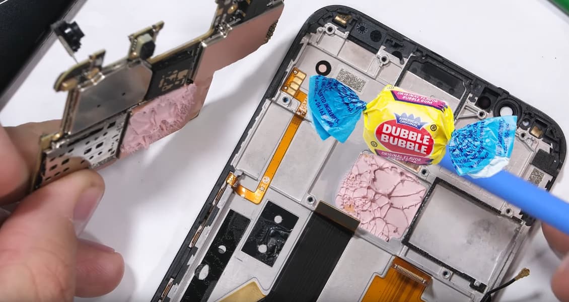 Также видео позволяет оценить то, как реализована подсветка в смартфоне. Любопытно выглядит и термопаста, которая тут почему-то розовая.