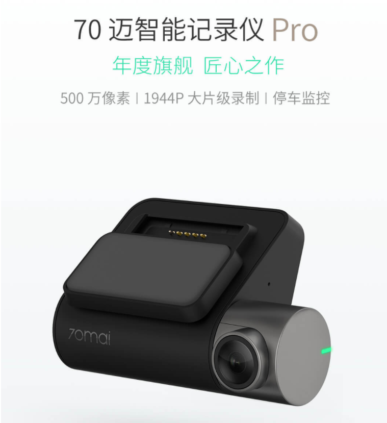Xiaomi 70mai Pro Dash Cam работает на двухъядерном процессоре HiSilicon Hi3556, который поддерживает технологию кодирования H.265, повышающую эффективность сжатия видео. Xiaomi 70mai Pro Dash Cam оснащен датчиком изображения Sony IMX335 разрешением 5 Мп и объективом с диафрагмой F/1,8. Видеоролики записываются в разрешении 2592 x 1944 пикселей. Объектив позволяет пользователям фиксировать номера автомобилей и все, что происходит на проезжей части, в пределах 140 градусов. Камера позволяет фиксировать объекты с высокой четкостью даже на расстоянии около 70 метров.