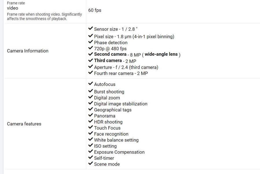 В основной камере модели кроется главный сюрприз: датчиков здесь не два и не три, а целых четыре. Следовательно, в Huawei Nova 5 их будет не меньше. Основной модуль представлен датчиком изображения Sony IMX576 разрешением 25 Мп и объективом с диафрагмой F/1,8. Во втором модуле применен широкоугольный объектив и датчик разрешением 8 Мп, компоненты третьего модуля — датчик разрешением 2 Мп и объектив с диафрагмой F/2,4. Наконец, в четвертом модуле также применяется датчик разрешением 2 Мп. Оптическая стабилизация в перечне возможностей камеры отсутствует.