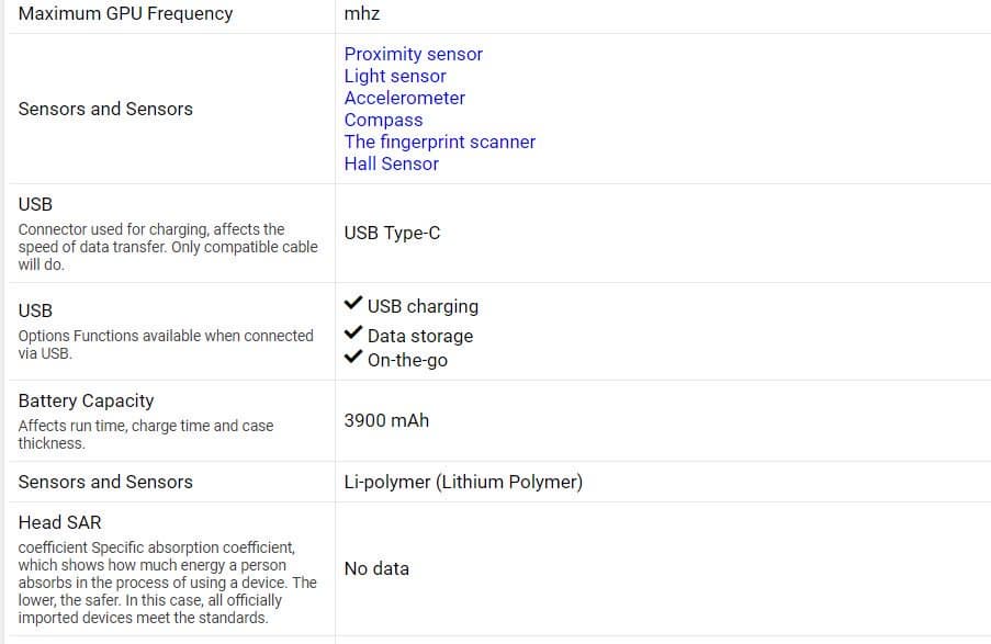 Емкость аккумуляторной батареи смартфона — 3900 мА·ч. Зарядка ее осуществляется при помощи кабеля USB-C.