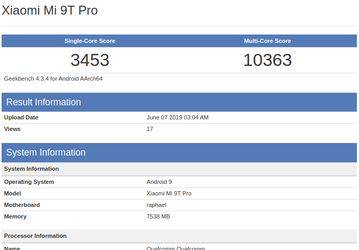 Xiaomi Mi 9T Pro показал возможности в Geekbench