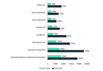Microsoft — лидер по количеству патентов, связанных с ИИ. Samsung расположилась на третьем месте