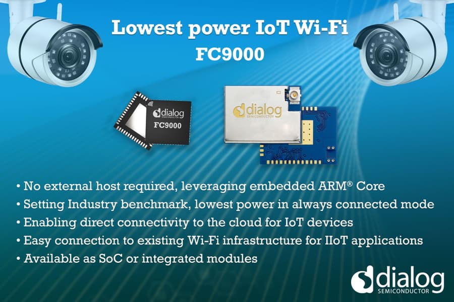 Компания Dialog Semiconductor, выпускающая контроллеры питания и зарядки, преобразователи напряжения, звуковые микросхемы и контроллеры Bluetooth с пониженным энергопотреблением, недавно представила однокристальную систему FC9000. Новинка стала первым изделием Dialog Semiconductor с поддержкой Wi-Fi, выпущенным после приобретения подразделения мобильных коммуникаций Silicon Motion (сделка была закрыта 31 мая 2019 года).