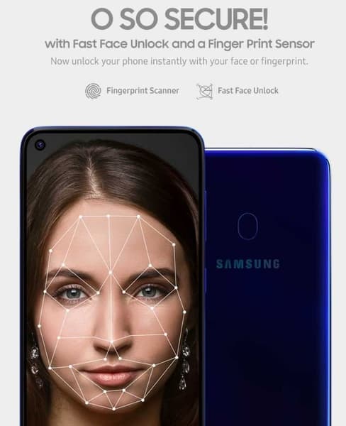 На тыльной панели размещена тройная камера, заимствованная у Galaxy A70. Основной датчик разрешением 32 Мп соединен с объективом с диафрагмой F/1,7. Второй датчик характеризуется разрешением 8 Мп и широкоугольным объективом с диафрагмой F/2,2 и углом обзора 123°. Наконец, третий модуль с датчиком разрешением 5 Мп и объективом с диафрагмой F/2,2 применяется для анализа глубины сцены.
