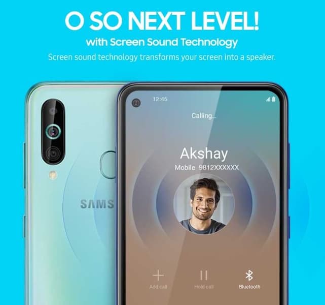 Модель оснащена экраном IPS Infinity-O (с врезанной фронтальной камерой) диагональю 6,3 дюйма разрешением Full HD+. Дисплей занимает 91,8% площади передней панели. Помимо своей непосредственной функции он выполняет роль громкоговорителя.