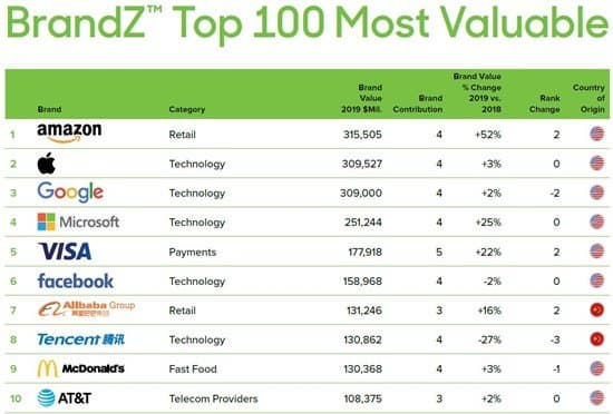 Специалисты WPP и Kantar опубликовали 12 редакцию ежегодно обновляемого списка самых ценных мировых брендов, который называется BrandZ и включает 100 позиций.