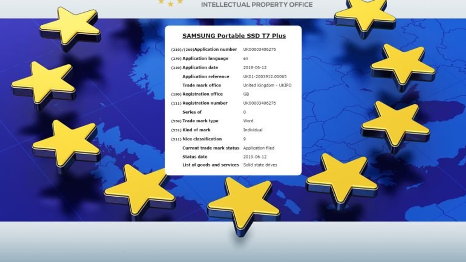 12 июня в Ведомстве по интеллектуальной собственности Великобритании появилась заявка на регистрацию новой торговой марки Samsung Portable SSD T7 Plus. Несмотря на то, что название и так говорит само за себя, в ее описании упоминаются твердотельные накопители и устройства хранения данных.