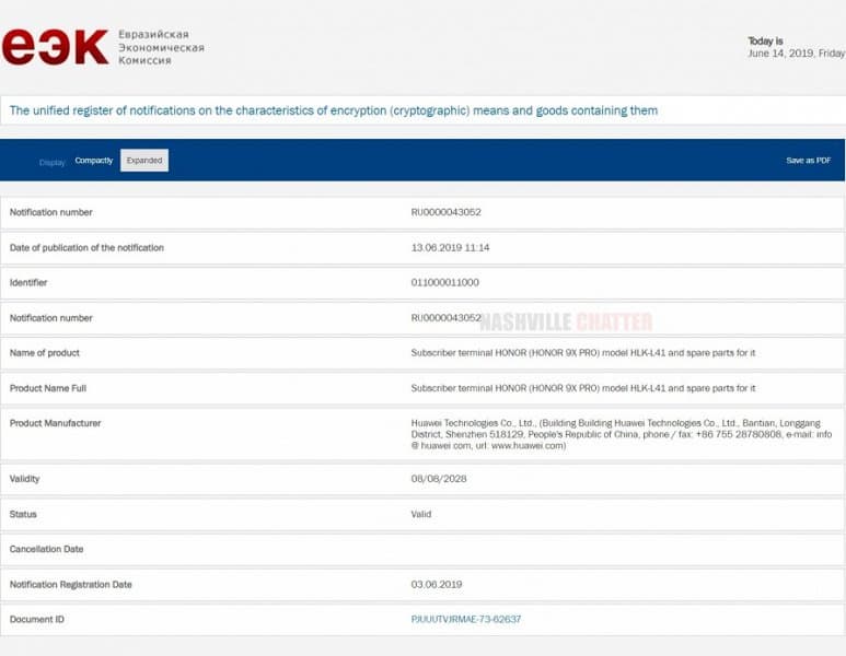 Вчера мы написали о том, что Honor 9X Pro уже получил необходимый сертификат, разрешающий продажу смартфона в России, а сегодня известный сетевой инсайдер Мукул Шарма (Mukul Sharma) опубликовал возможные характеристики и даже стоимость модели.