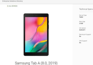 Опубликованы характеристики бюджетного планшета Samsung Galaxy Tab A 8.0 (2019)