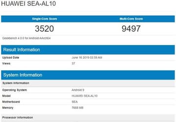 Huawei Nova 5 Pro засветился в Geekbench c Kirin 980 и 8 ГБ оперативной памяти