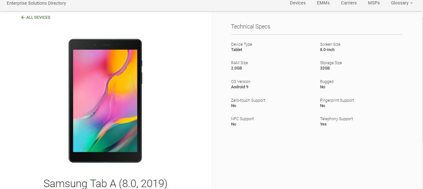 Теперь мы точно знаем, что планшет оснащен 8-дюймовым дисплеем, имеет 2 ГБ оперативной и 32 ГБ встроенной флэш-памяти, не имеет NFC и сканера отпечатков пальцев, зато поддерживает голосовые звонки. В качестве ОС выступила Android 9.0 Pie.