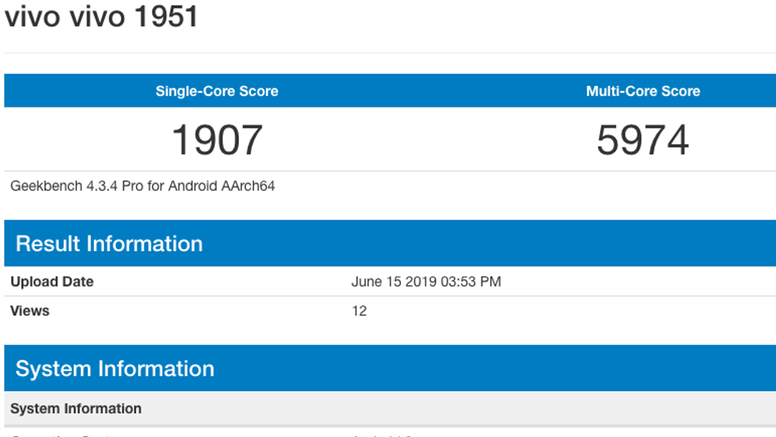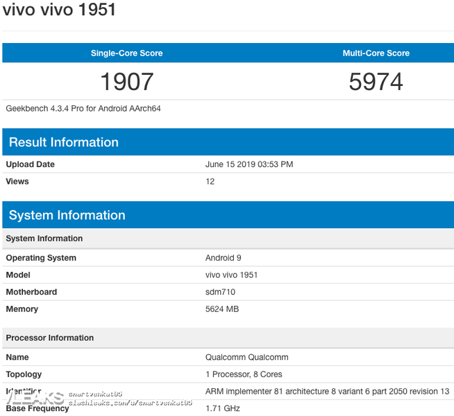 В базе данных бенчмарка Geekbench появился смартфон Vivo с модельным номером Vivo 1951, в результате чего мы узнали некоторые из его характеристик.