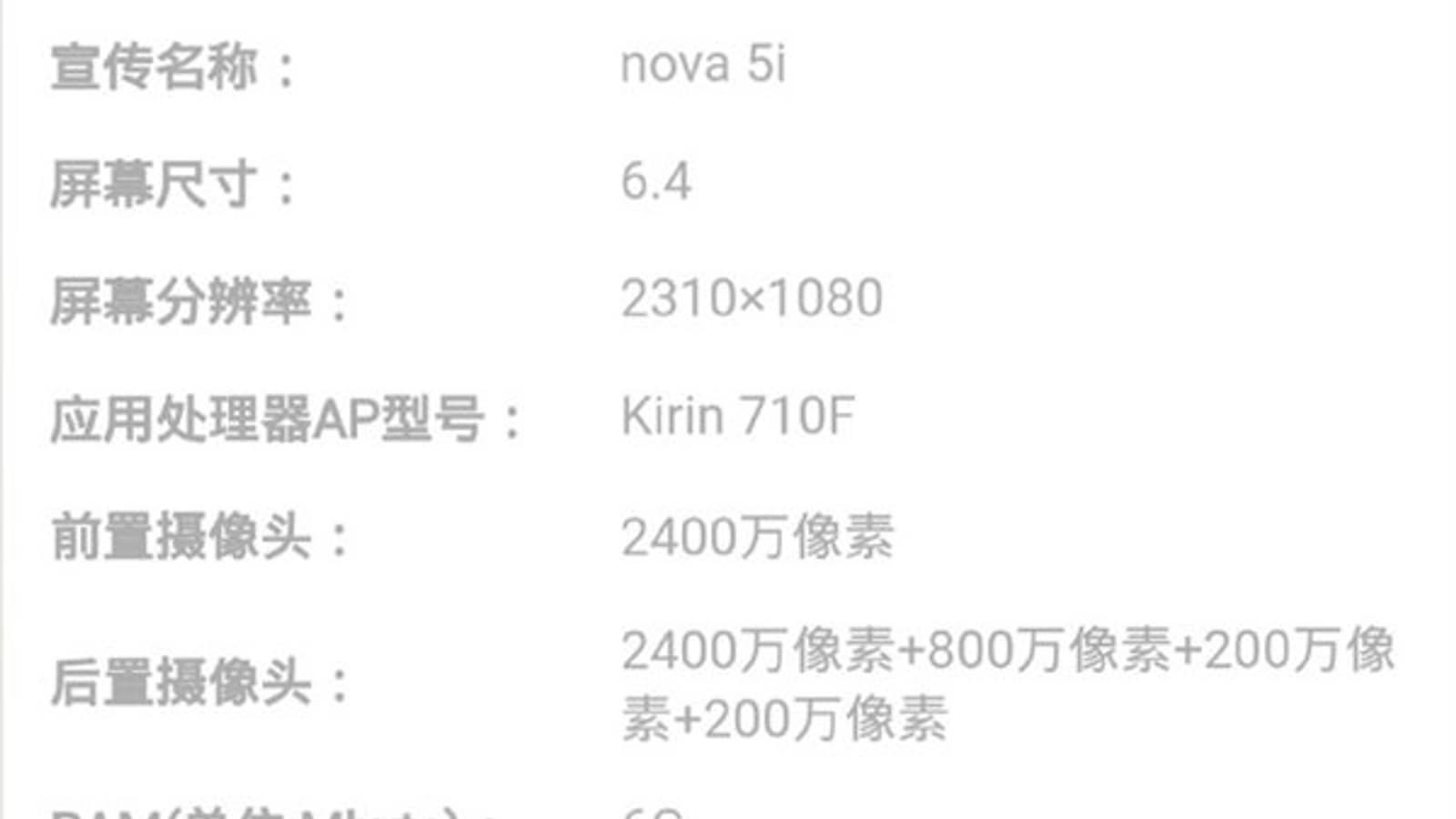 В конфигурации Nova 5i значится дисплей диагональю 6,4 дюйма, у двух других моделей – 6,39 дюйма. Разрешение Nova 5i – 2310 x 1080 пикселей, остальных – 2340 х 1080 пикселей.